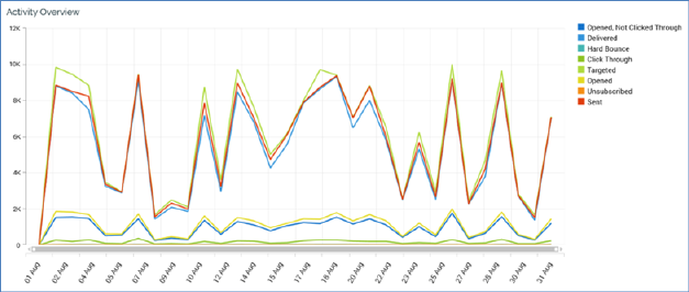 This line chart is displayed when an interaction activity is selected in the treeview. It displays results for the selected activity over time.
