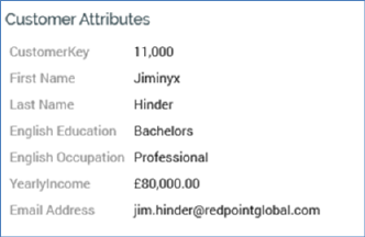 This section displays values for the current record for each of the attribute groups (Properties list and/or Table) defined in the current customer view.