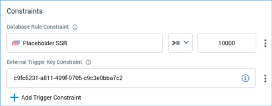 •Add Trigger Constraint: invoking this button allows you to select the type of trigger constraint you wish to add from a menu (database count or external trigger constraint). Note that, when configuring a wait for event, you may only add database count constraints. Invocation creates a new, unconfigured constraint of the appropriate type within the constraints list.