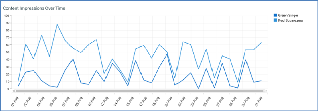 This line chart displays the trend of the selected smart asset's content elements being rendered across the selected date range.