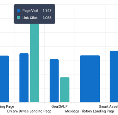 Bars are ordered alphabetically by name. A numerical count is displayed each section within a bar. Only checked landing pages are shown.