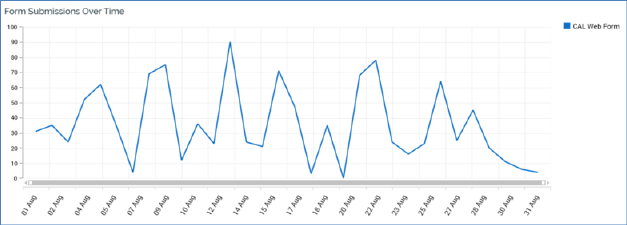 This line chart displays the trend of the web forms being submitted across the selected date range.