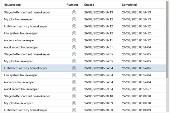 o Staged offer content housekeeper: removes any staged email offer content after a period in days accordant with system configuration setting DaysToRetainStagedContent (set to 90 days by default).