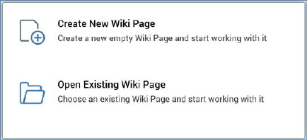 § Open Existing Wiki Page: invocation of this option displays the Open Wiki Page File System Dialog, allowing for the selection of a Wiki page to open in the Wiki Page Designer. The dialog is limited to display Wiki pages only. On selection of a Wiki page, it is displayed for edit in the Wiki Page Designer.