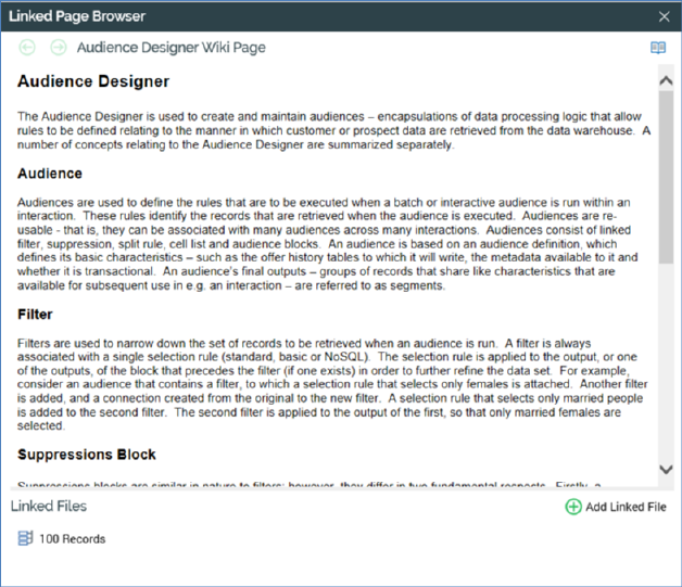 You can display a file’s linked Wiki (or external web) page in the Linked Page Browser.
