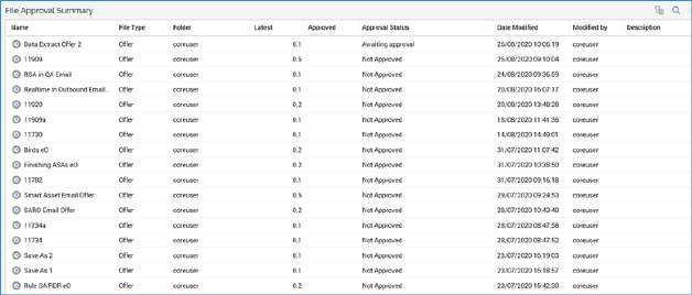 It provides an at-a-glance summary of the current state of files’ approval statuses to operational users.