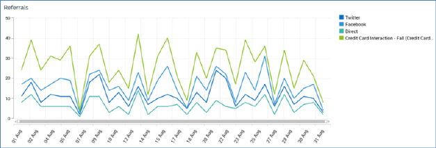 •If referred from an RPI offer or broadcast, ‘[Interaction Name] ([Offer Activity Name] / [Offer Activity Channel Name])’ is shown. Note that outbound or broadcast channels must be associated with a web events or Matomo adapter for referral results to be captured.