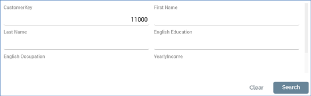 •Clear: this button is enabled on a value being entered in a search criterion field. Clicking it removes from display all entered search criteria, as well as Search Results (if any are shown).