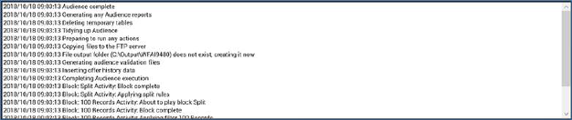 You can highlight an audience instance in the results grid in order to view read-only related log messages in the selected audience instance details field.
