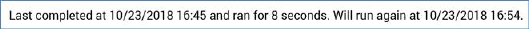 ‘Now running. Started at [date/time]. Last completed at [date/time] and ran for [n] [units]. Will run again at [date/time]’