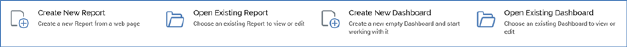 •Open Existing Dashboard: this button allows you to choose an existing dashboard to view or edit. Clicking it displays the Open Existing Dashboard File System Dialog, in which you can choose a dashboard and double-click it, or click OK, to open it in a Dashboard Viewer tab.